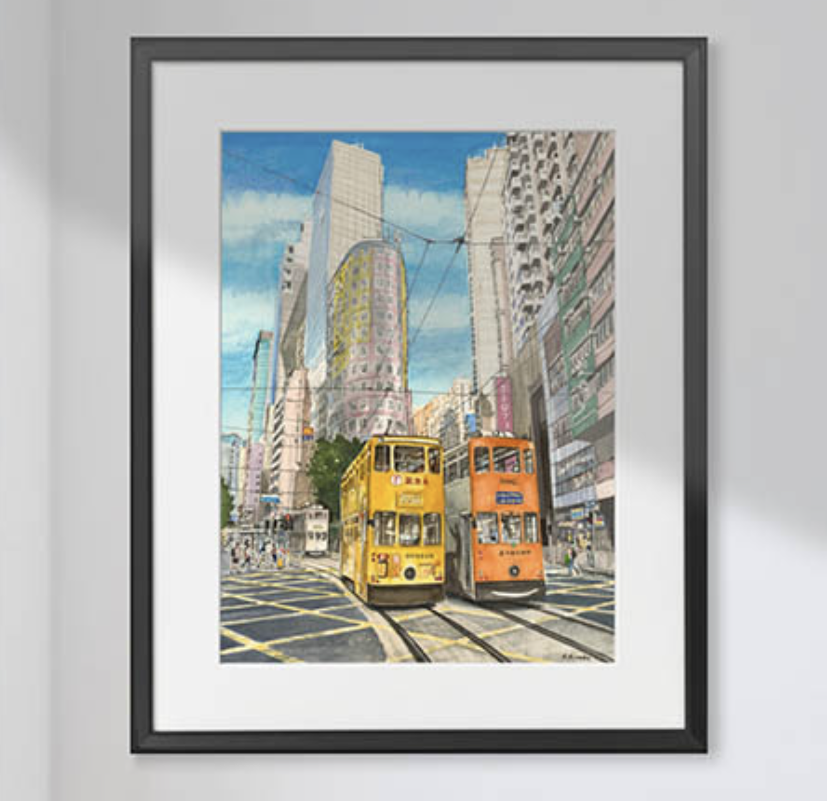 "Something about these trams cheers me up when I look at them. Like they are two buddies meeting on the street." said the artist of this piece of artwork who has lived in Hong Kong for over 30 years. This artwork beautifully captures a unique scenery of Hong Kong, making it a meaningful gift to bring this precious memory with you wherever you go.