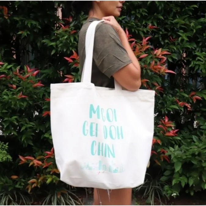 This “M Goi Gei Doh Chin” cotton canvas bag designed by one of our Qraftie sellers let you to carry all your bulky items with you easily whenever you go to the beach, to the gym or when you head out for your weekly shopping .